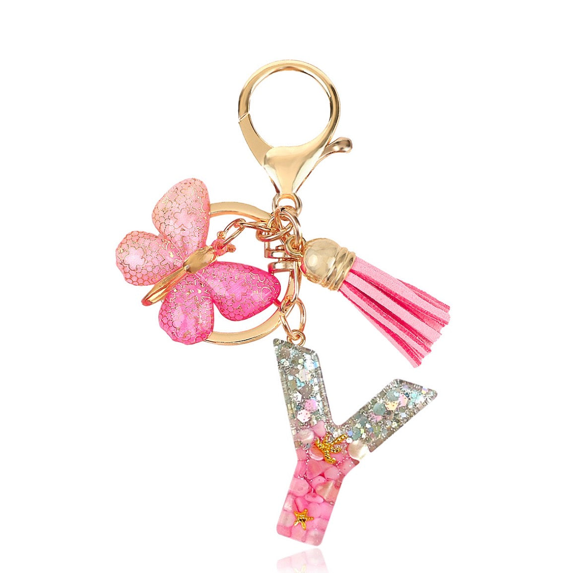 K170 Llavero letra Y Rosa mariposa acrílico